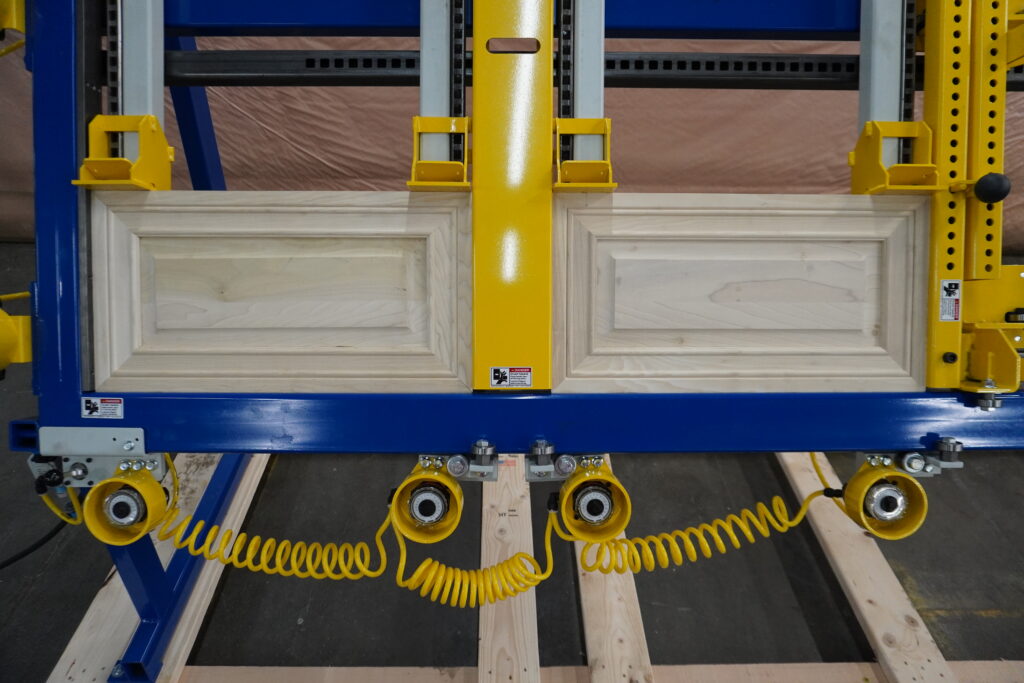 Take advantage of (2) total squaring sections for clamping and squaring of multiple cabinet doors (each is 38′w x 46′l) for superior output.