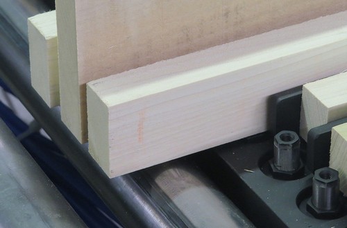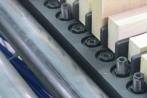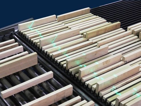 Scanning is based on line lasers at high angles being read from USB based array cameras. As many as 34 staves are measured at any time for each panel solution. Final solutions within +/- 050" up to 40" wide panels. The final stave groups are kept together and fed to a customer supplied glue wheel.